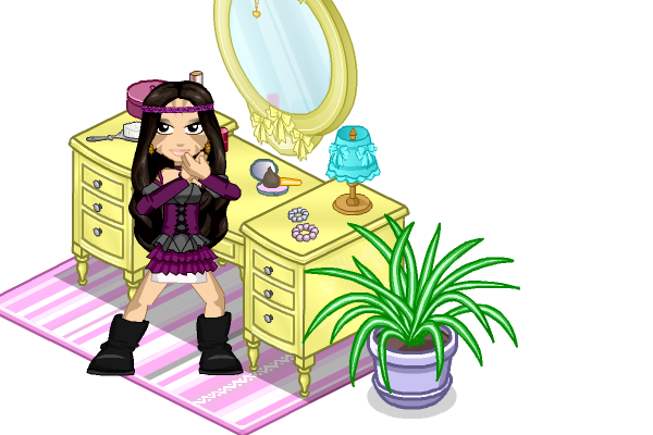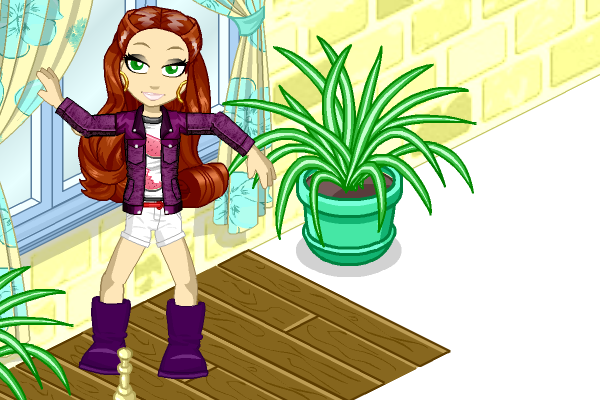 Okay :D Now onto the outfits (my FAVORITE part) This is my outfit which i really like alot. Yeah yeah i know the shirt is Jays shirt, but hey, just because its a boys shirt doesnt mena you cant wear it :) The shorts are just, perfect and match the watermelons on the shirt. ;) The boots also match the jacket color which makes it fit together perfecto. And the hair, i usually dontlike big hair but i decided to use Meygans brtz hair for this outfit :)