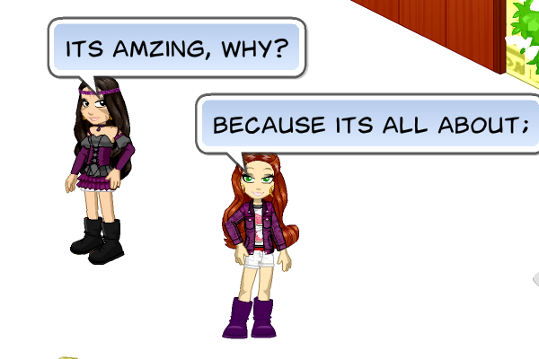 Kisses outfit is also PERFECTO TBH I like her outfit better :P We both are wearing the winter boots, and bratz hair just different kinds of them. Her shirt is soo pretty and the color suits her very very very well, and also it is her main color she wears, so hats probably why xP